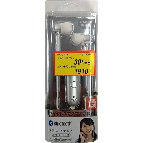 オーム電機 AudioCommワイヤレスイヤホン シルバー 03-1679
