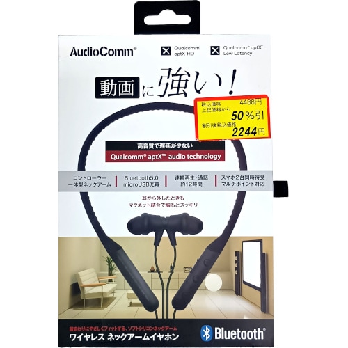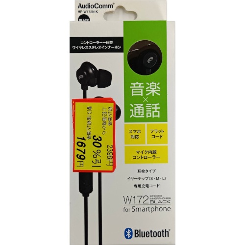 オーム電機 AudioCommワイヤレスステレオインナーホン コントローラー一体型 ブラック [品番]03-2283