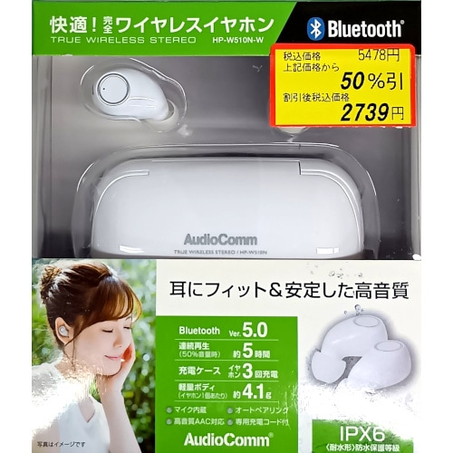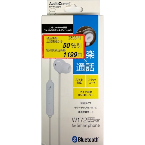 オーム電機 AudioComm ワイヤレスステレオインナーホン コントローラー一体型 W172 ホワイト
