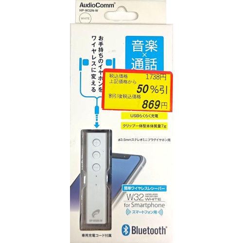 AudioComm簡単ワイヤレスレシーバー ホワイト 03-2048