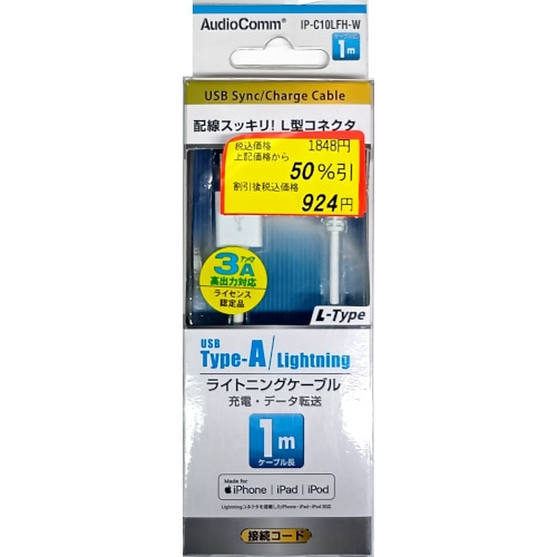 AudioCommライトニングケーブル L型 1m 01-7049