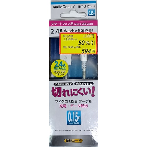 AudioComm 高耐久マイクロUSBケーブル 0.15m|SMT-L015TH-S 01-7056