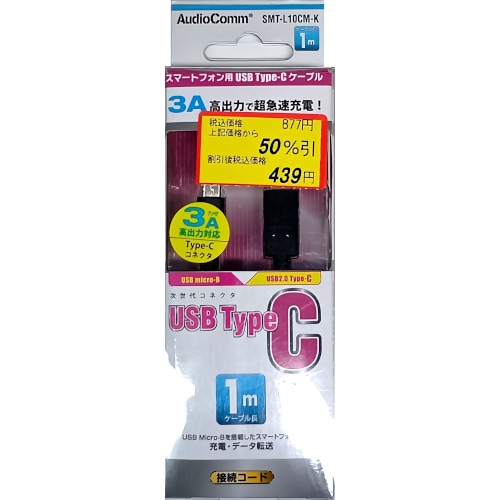 USB Type-Cケーブル C-microB 1m AudioComm