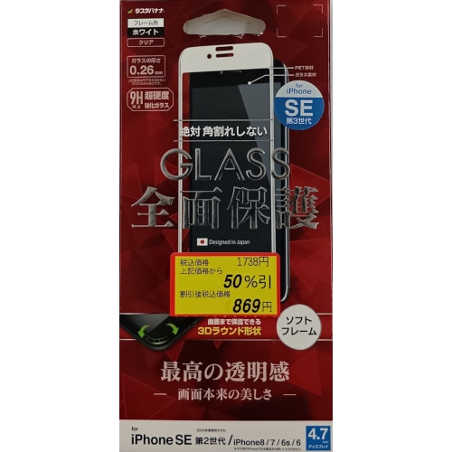 ラスタバナナ iPhoneSE(第2世代)/8/7/6e/6用 全面保護プレミアムグラス
