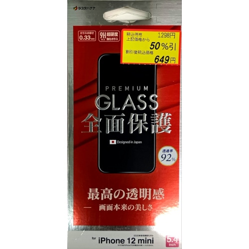 ラスタバナナ iPhone12mini用 GLASS全面保護