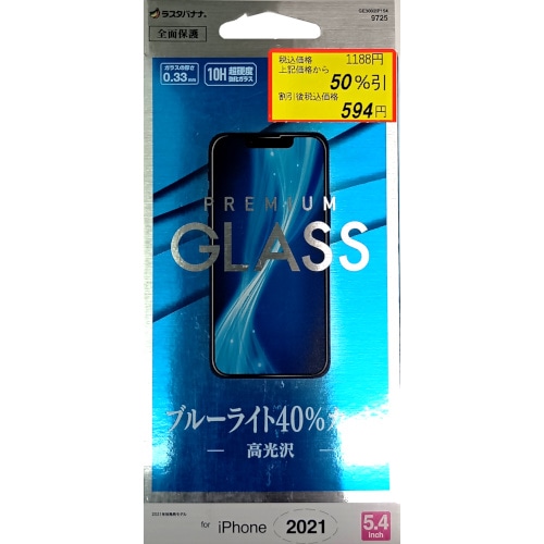 ラスタバナナ iPhone2021年モデル(13mini)用 全面保護プレミアムグラス ブルーライト40%カット