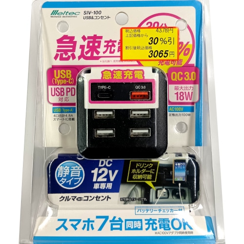 メルテック インバーター急速充電器 USB(Tyep-C)USB PD対応